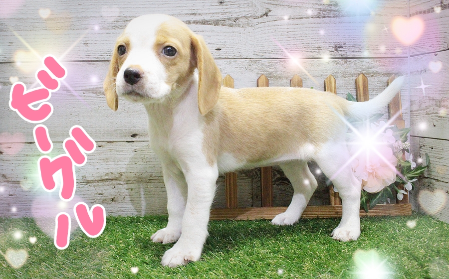 レモン&ホワイトの毛色のビーグルちゃん。女の子です。優しいお顔をしてます!
