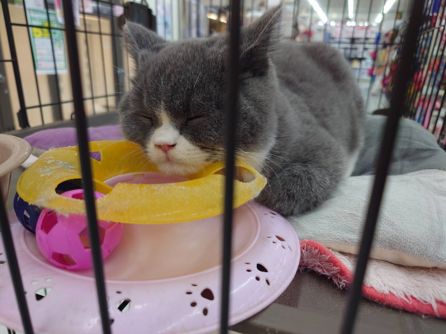 おもちゃにあごのせして寝るブリテッシュくんzZ