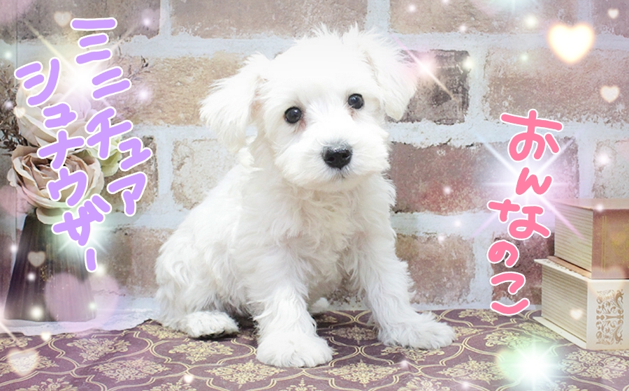 当店では久しぶりのホワイトのミニチュアシュナウザー。女の子です。