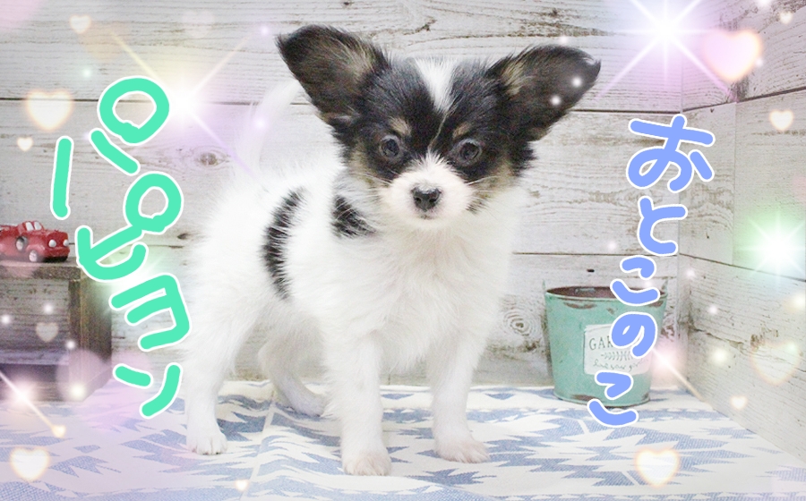 こちらのパピヨンくんも当社で産まれた子です。上の子と兄妹です。甘えん坊くんですよ。