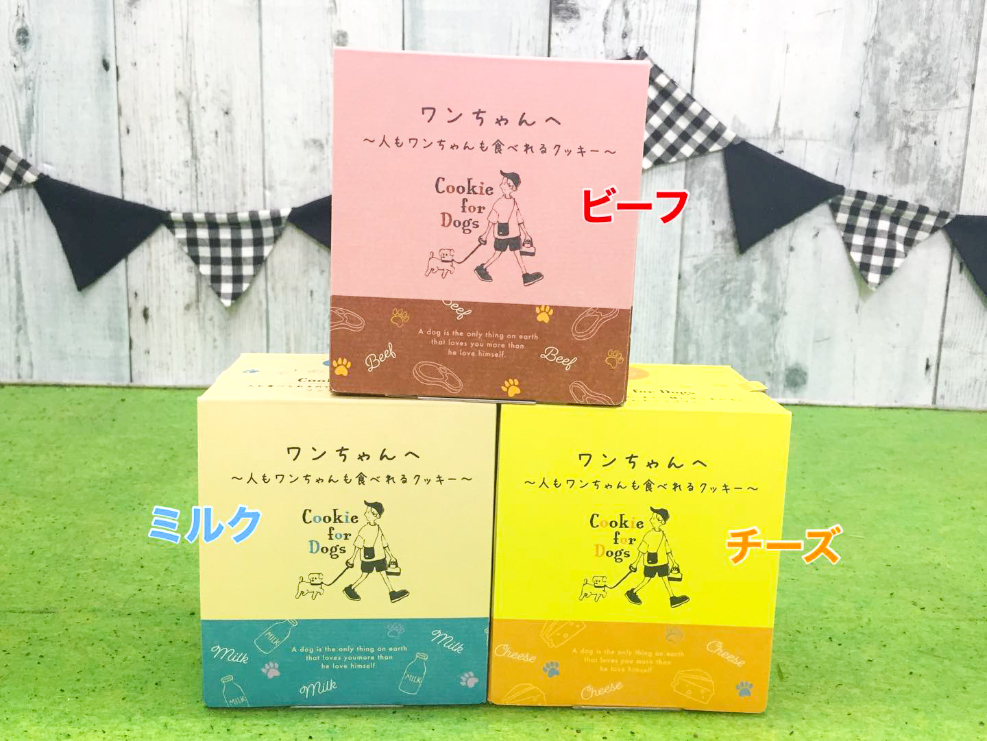 こんにちは!こいぬこねこ館岡崎本部店です。わんちゃんのおやつ、どんな味なんだろう?って気になったことありませんか?『ワンちゃんへ〜人もワンちゃんも食べれるクッキ 一〜』は人もワンちゃんも一緒に食べることができるクッキーなので味見できちゃいます。小麦ふすまを使用して、人間用の食品工場・食品原 料で製造♪犬用なので味は薄めだと思いますが味の種類も美味しそう!