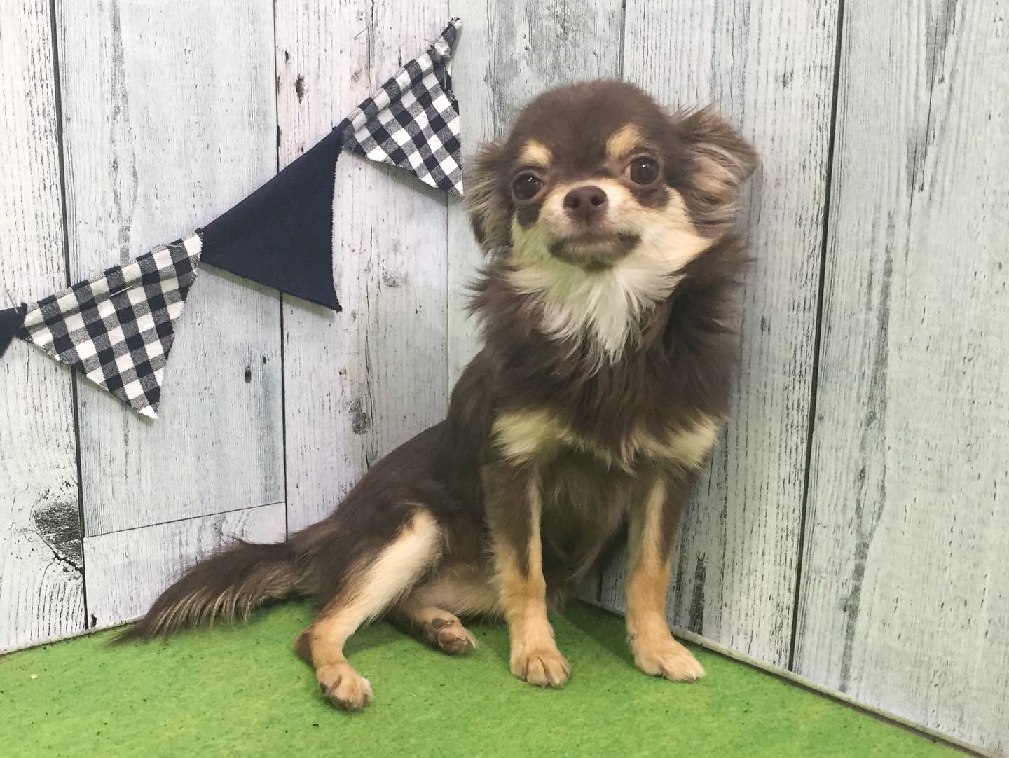 そして撮影に協力してくれたチワワちゃん。とっても人が大好きな甘えん坊で嬉しくて耳ペターンの尻尾ブンブン!サイズも小さく将来は2kg前後。めちゃ可愛いのでぜひ会いにきてくださいね