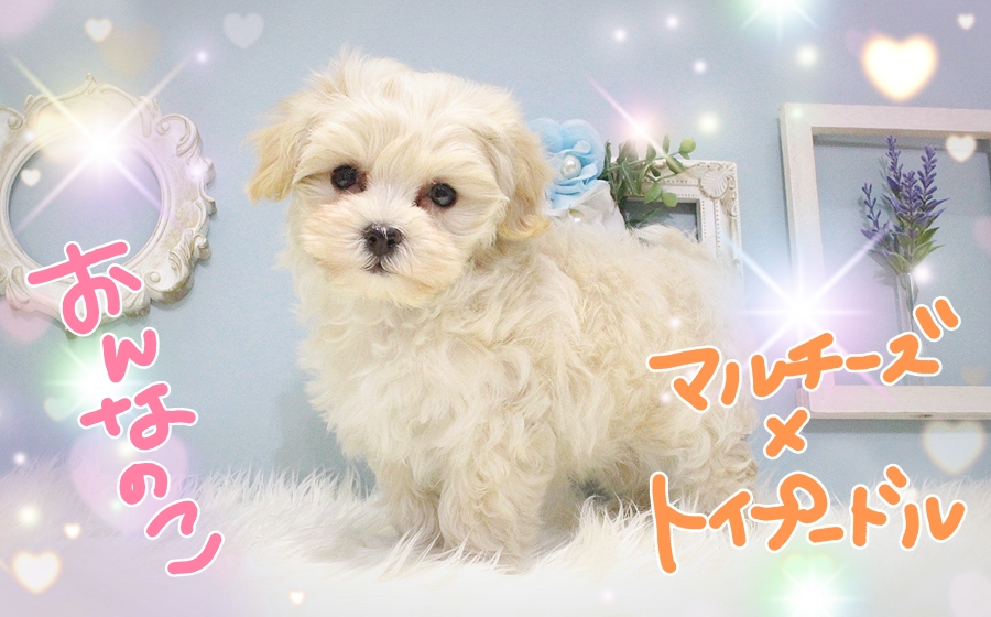 マルチーズとトイプードルのハーフ犬。マルプーちゃんです。おっとりさんで可愛いですよ!