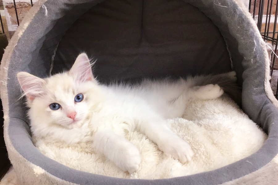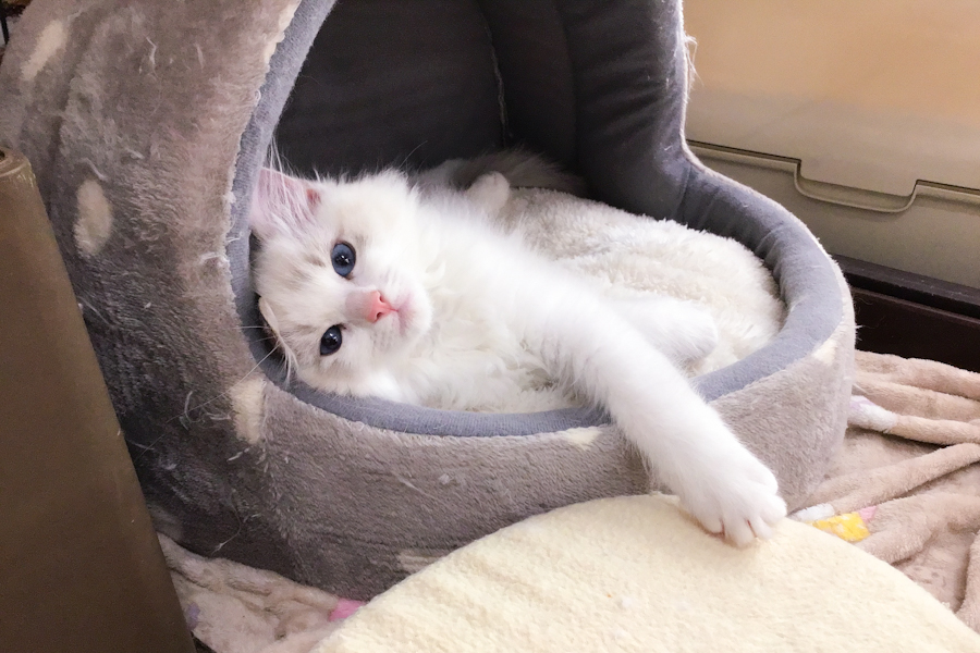 今日はラグドールくんのベッドでゴロゴロしてる瞬間をお見せします!