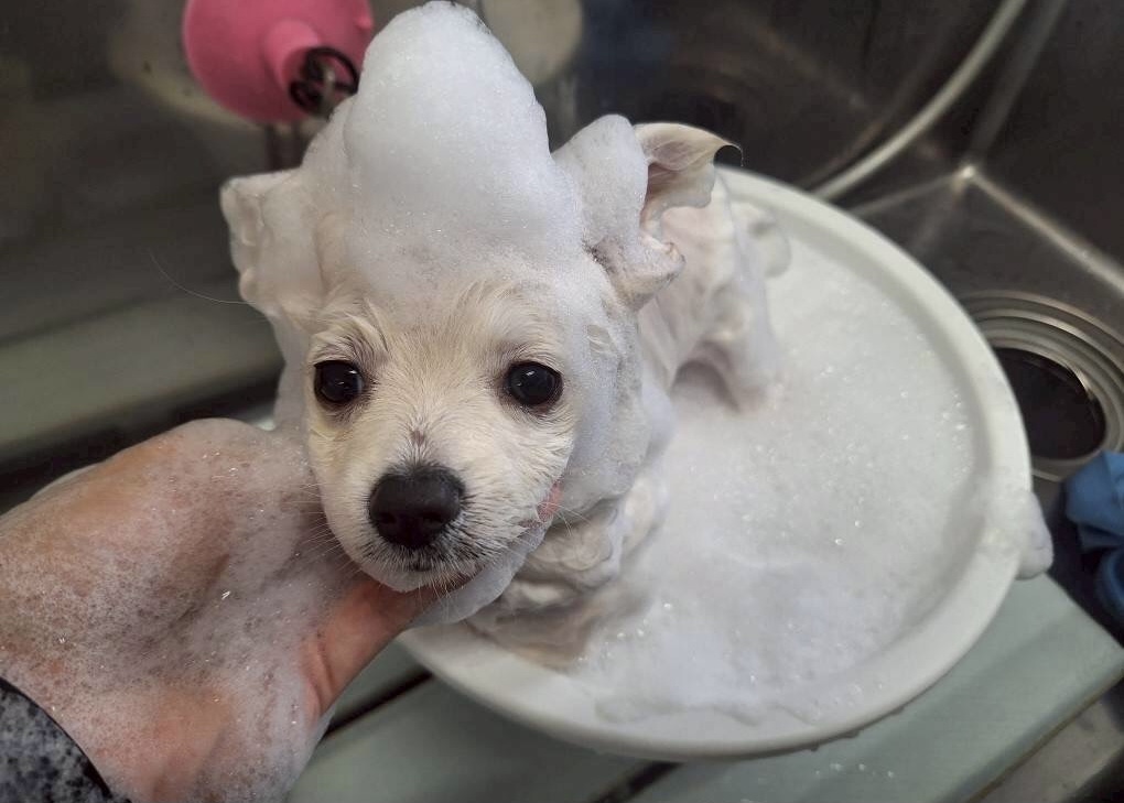 トリマーさんがポメラニアンくんのシャンプーをしてくれました!