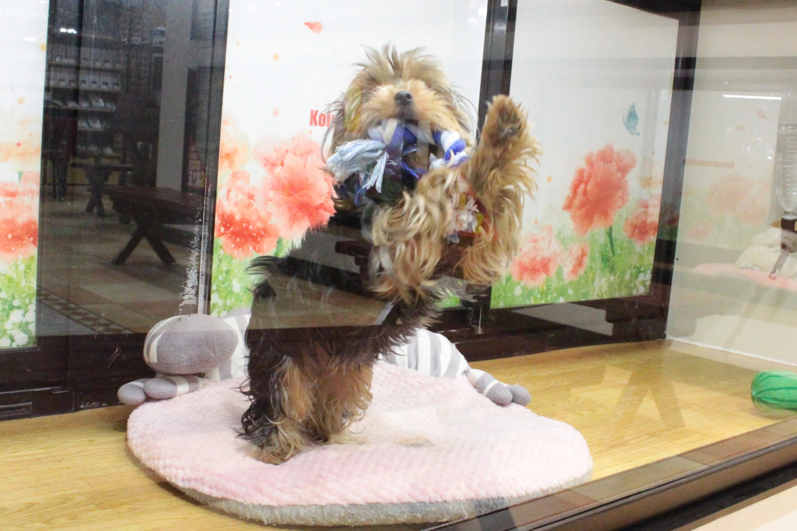 日進店から岡崎本部店に移動してきたヨーキーちゃん。移動してきた当初はちょっとビビリさんかなーと思ってましたが、今は岡崎本部店のスタッフに慣れてきたのかとってもお転婆さんです。