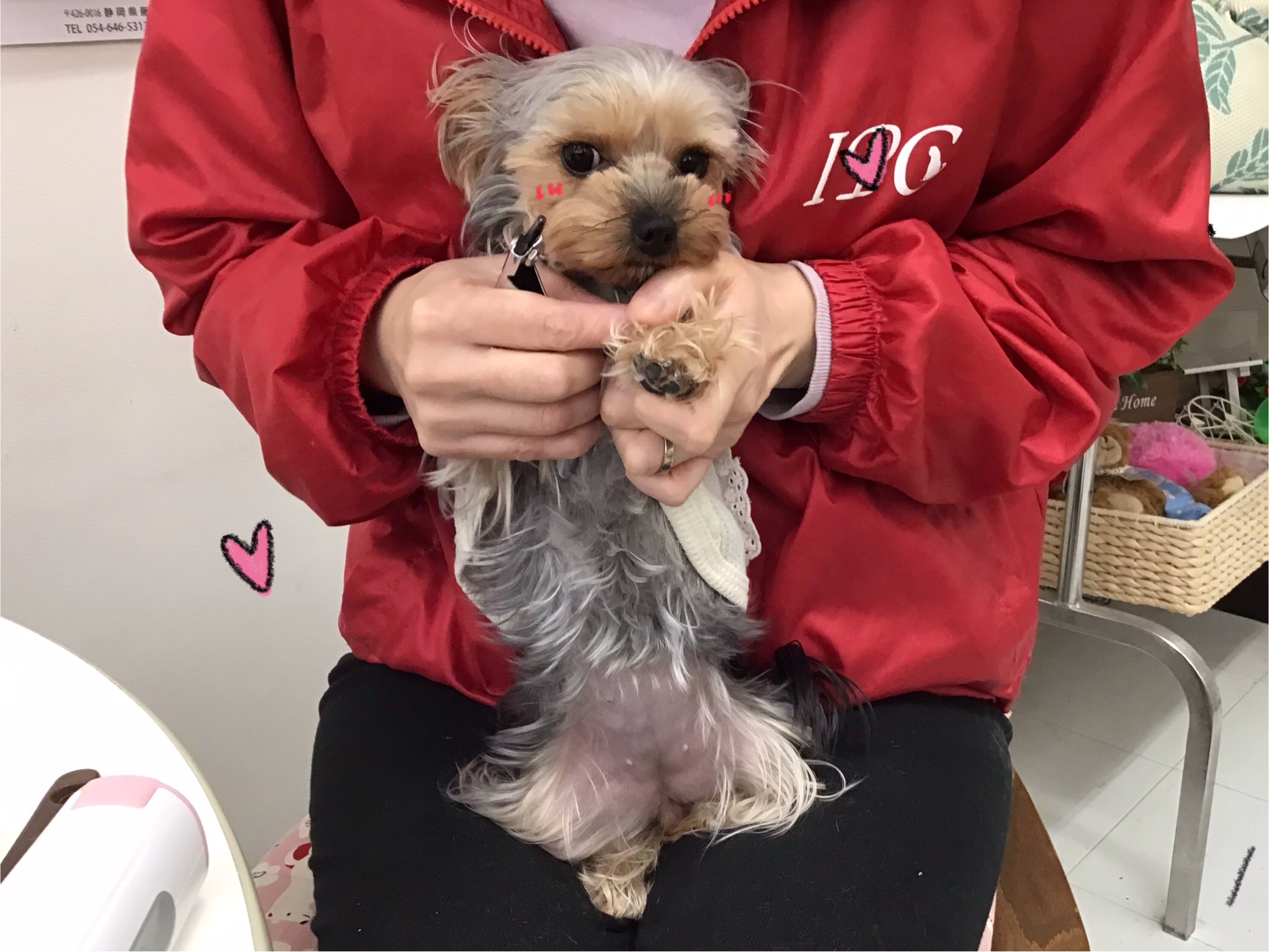 だーいすき!な店長にケアしてもらって嬉しそうなヨーキーちゃん(≧▽≦)
