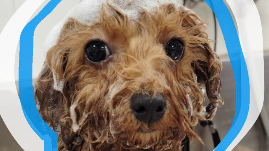 今日はトイプードルくんがシャンプーケアをして