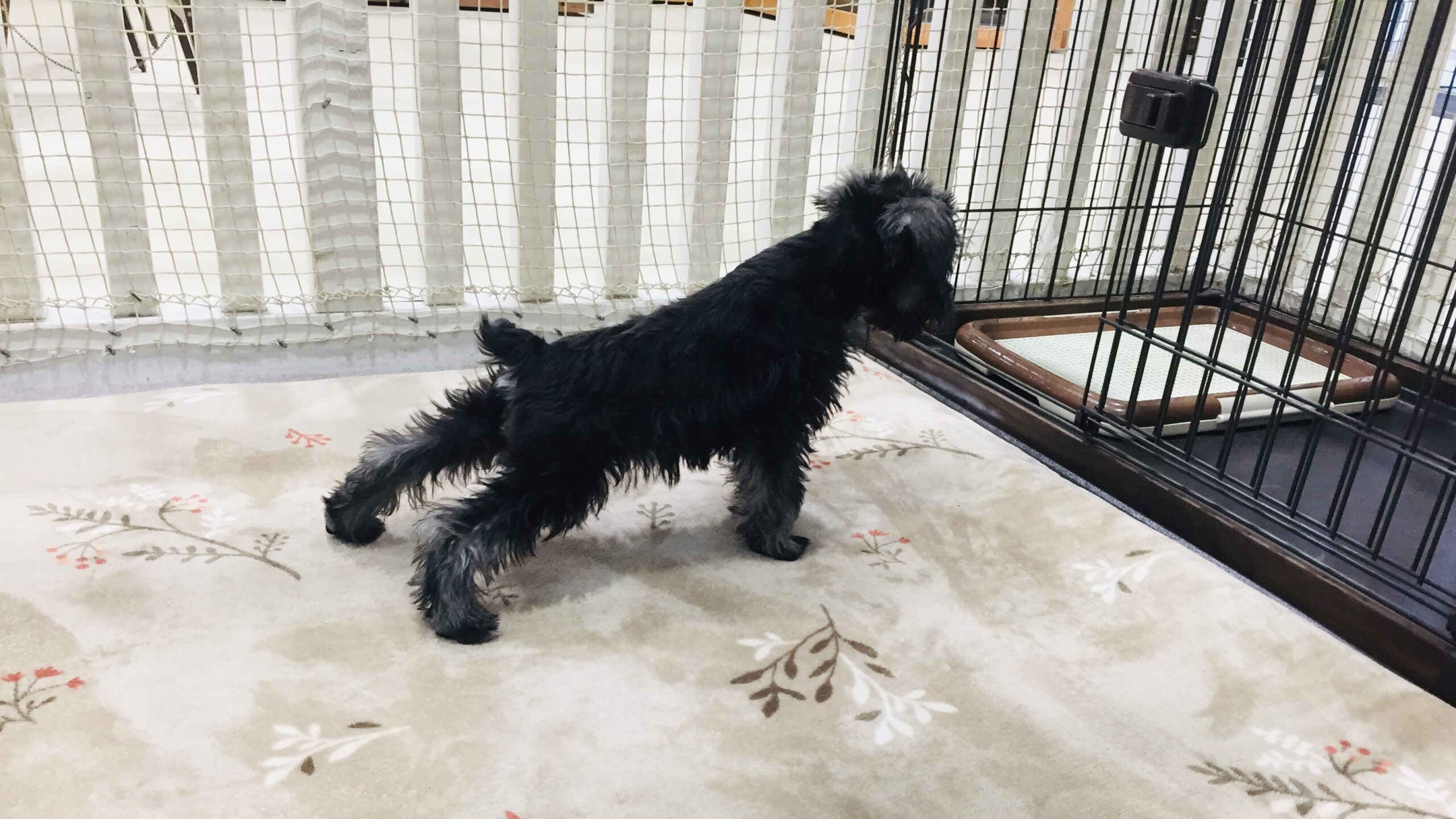 甘えん坊で抱っこが大好きなミニチュアシュナウザーちゃん。お部屋で遊んでいても、へっぴり腰ですぐにお膝に乗って甘々モード。スタッフもメロメロになっちゃいます。