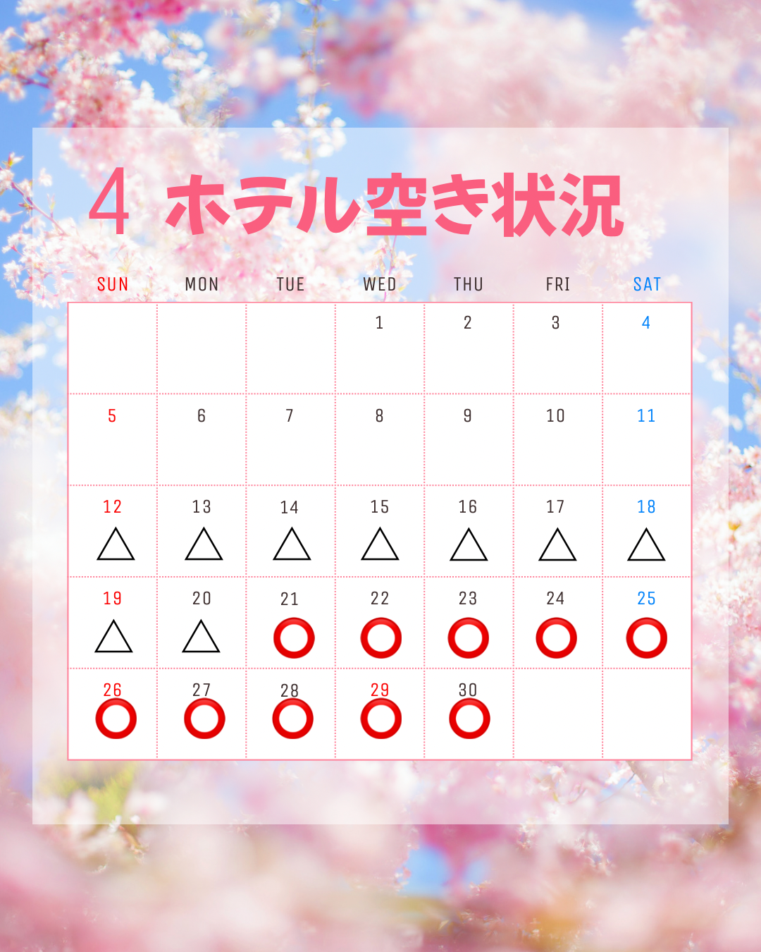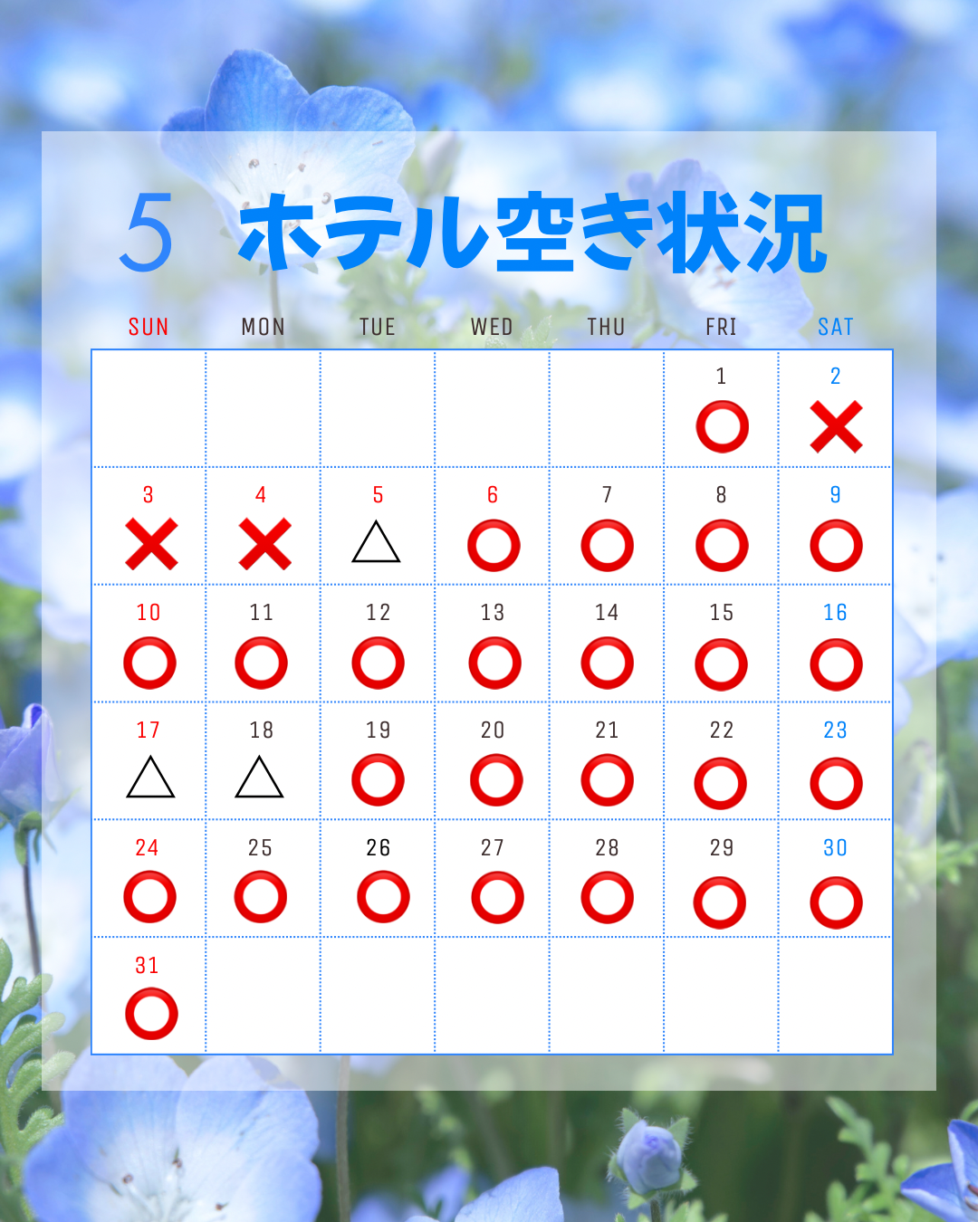 〇:空きあり △:残りわずか ✕:満室