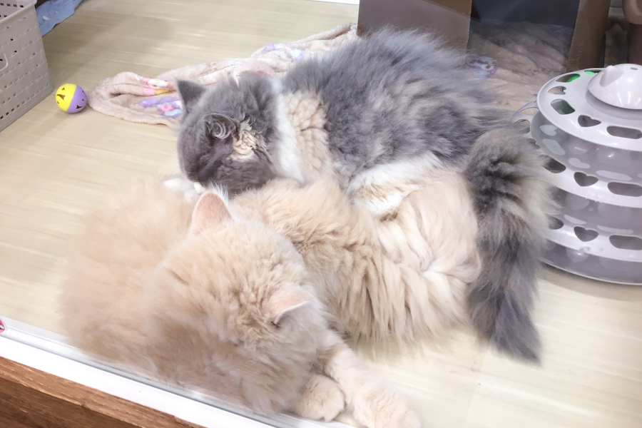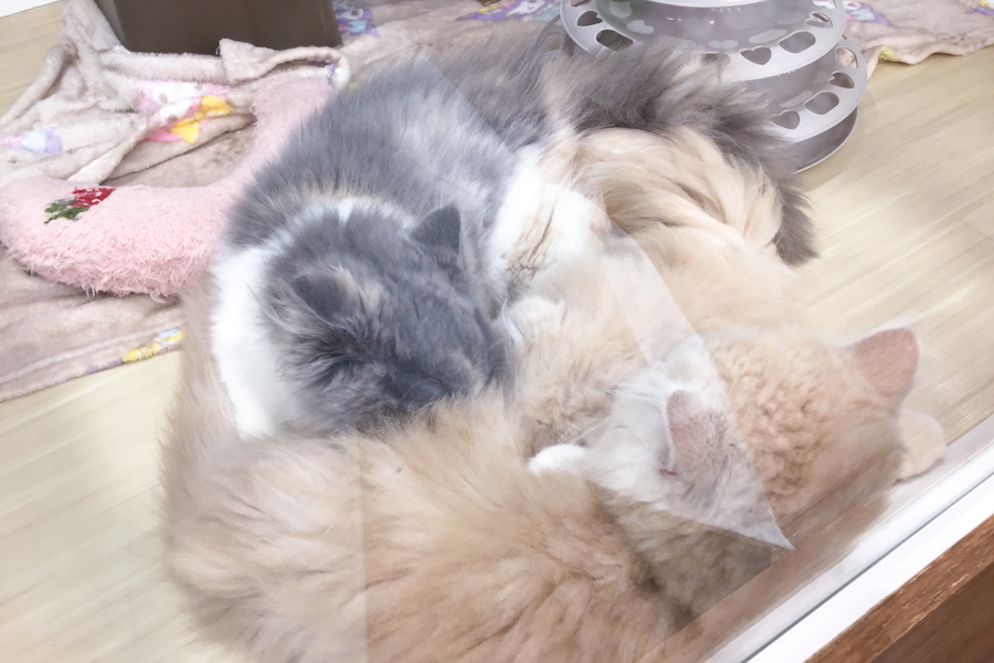 わかりにくいかもしれまでんが、3頭のネコちゃんが集まって団子に…!