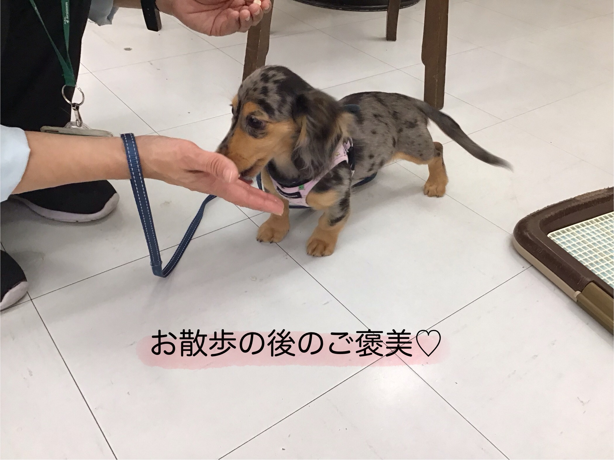 お散歩のあとは上手に歩けたご褒美(^^♪