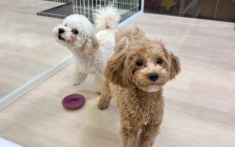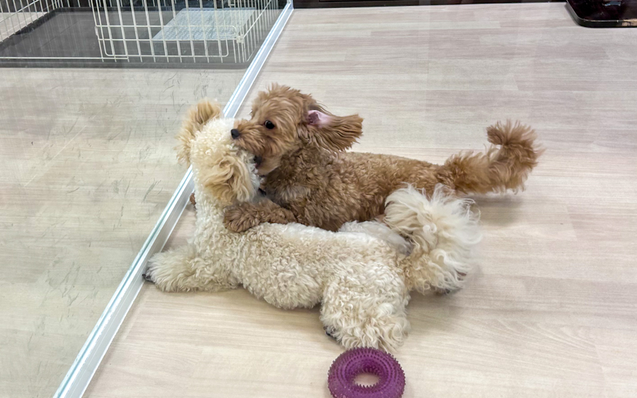 同じお部屋になってから、ケンカすることなくワンプロしたり、おもちゃで遊んだりと仲良く過ごしてます♪