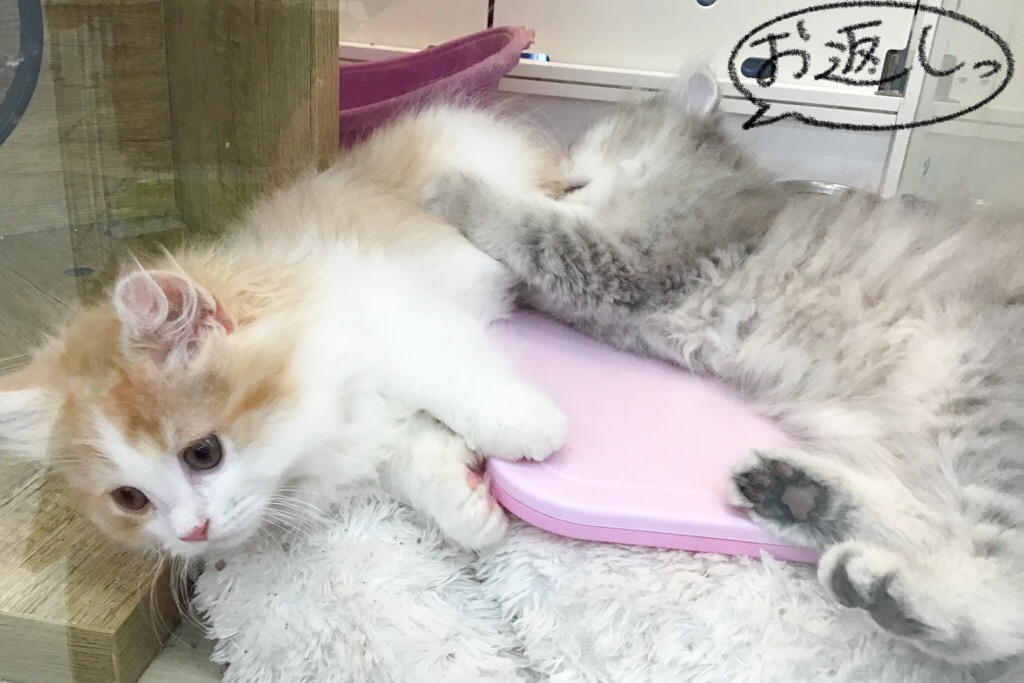 二匹で仲良く遊びながら猫同士の生活をお勉強中です☆