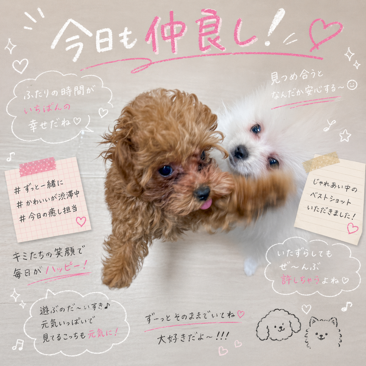二匹はお店に来てから同じ部屋で過ごしていて、とっても仲良しなんです( *´艸`)