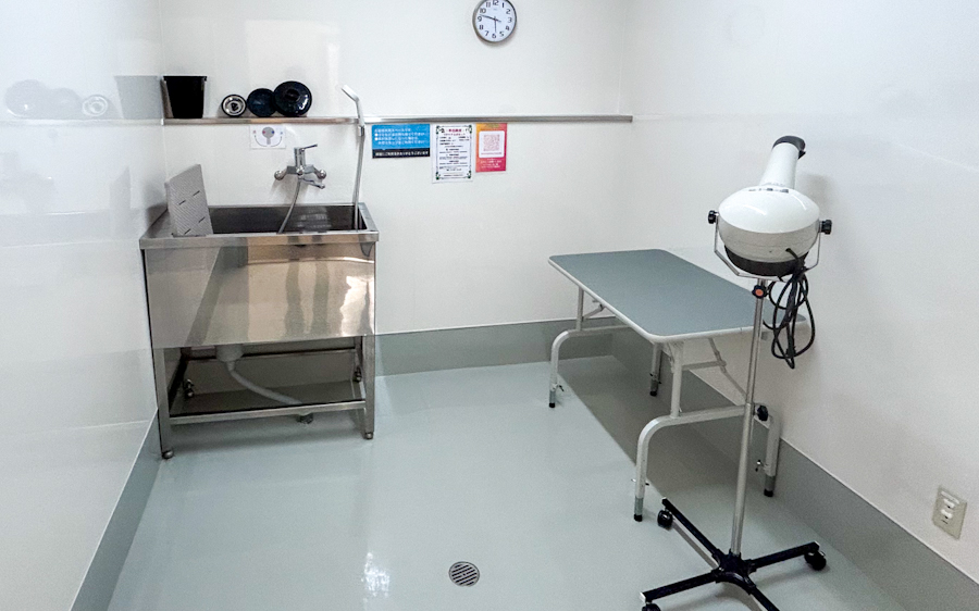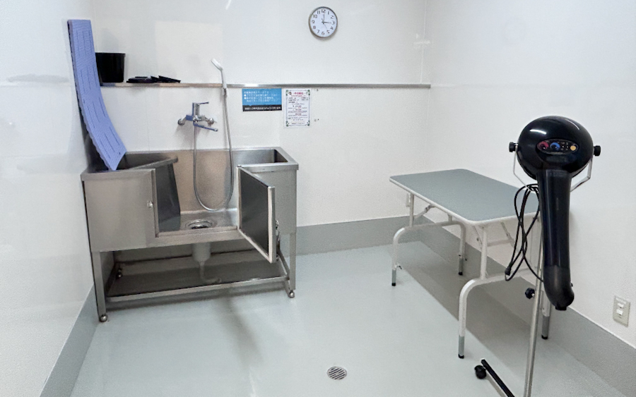 温水・バス・トリミングテーブル・リンスインシャンプー・ドライヤー・バスタオル(小型犬 1枚 中型犬 2枚、大型犬3枚)を貸し出しいたします。ご自身で、ご家族でわんこのシャンプーをやってみましょう!